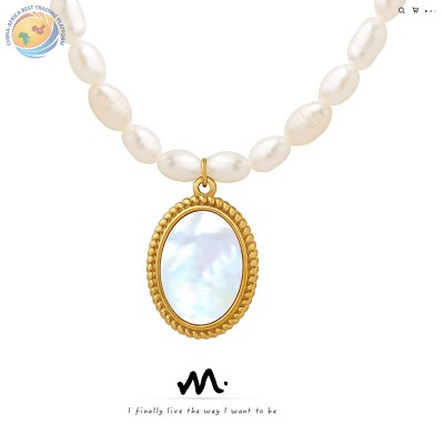 小众设计轻奢复古椭圆镶嵌白海贝壳吊坠项链