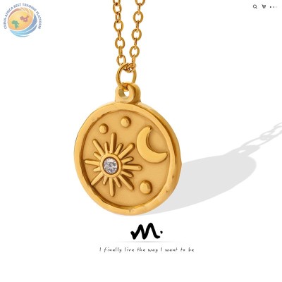 简约风时尚个性圆牌项链精致叠戴颈链女