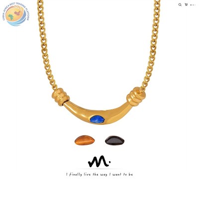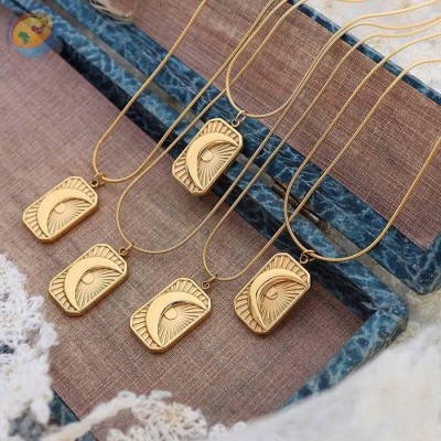 欧美ins风marka几何元素月亮项链 钛钢锁骨链