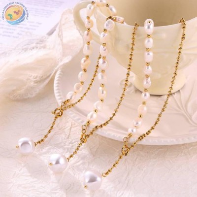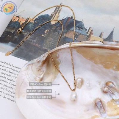 法式优雅气质温婉饰品淡水珍珠吊坠钛钢项链