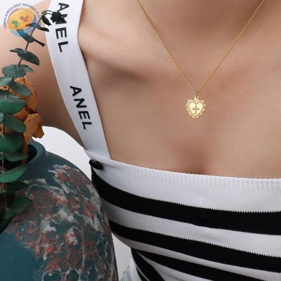 法式ins心形浮雕十字架图案爱心项链轻奢风