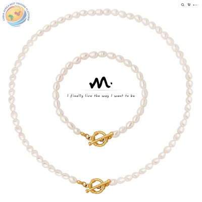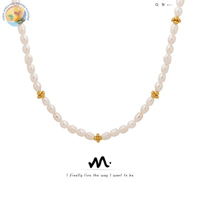 时髦时尚个性淡水珍珠金色配件项链法式潮流首饰