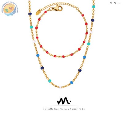波西米亚风珐琅滴油彩珠锁骨链十字夹珠女项链