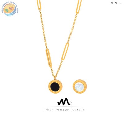 新款小众设计个性简约钛钢镀金黑白母贝项链
