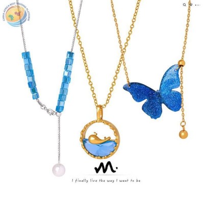 韩系ins风简约个性流苏链条设计感蓝色吊坠