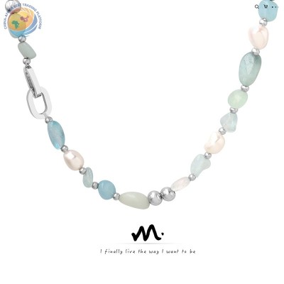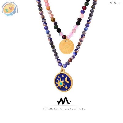 星空彩釉不锈钢吊坠蓝灵灰天然石手工项链女