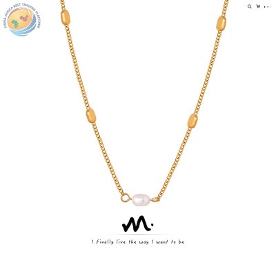 轻奢小众设计百搭钛钢镀金淡水珍珠吊坠项链