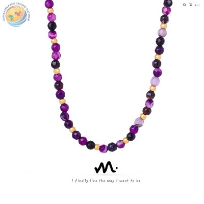 高级感复古小众设计天然玛瑙切面石手工串珠项链