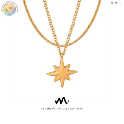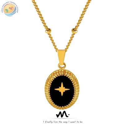 法式复古几何型饰品滴油芒星椭圆钛钢吊坠项链