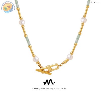 东陵石淡水珍珠OT扣设计项链法式ins首饰