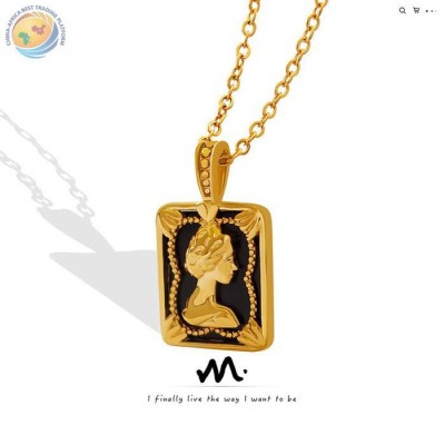 欧美宫廷风几何型人像方牌吊坠个性项链