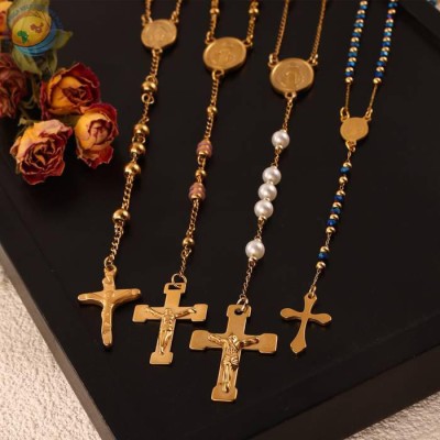 嘻哈小众项链浮雕圆牌流苏十字架吊坠