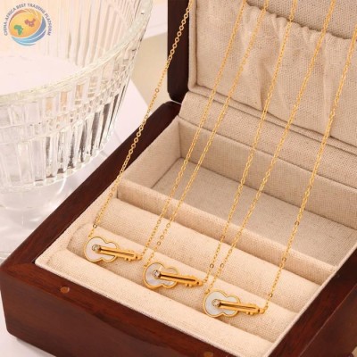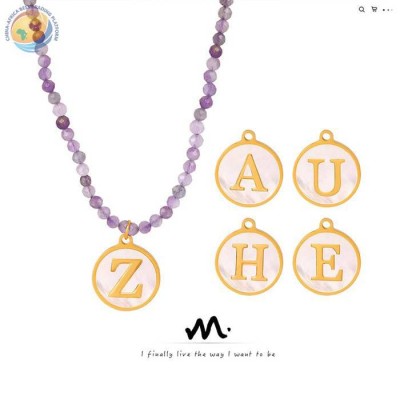 高级感轻奢小众钛钢镀金字母白母贝吊坠切割锆石项链