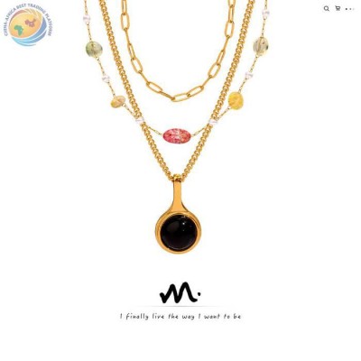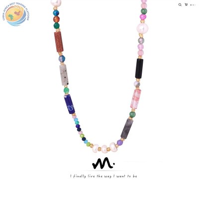 波西米亚淡水珍珠天然石玻璃钛钢串珠锁骨链