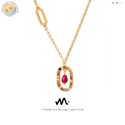 欧美新款小众设计时尚百搭椭圆形玛瑙吊坠