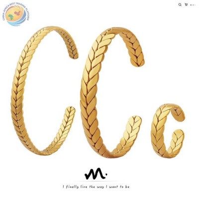 麦穗手镯个性戒指钛钢镀金首饰套装