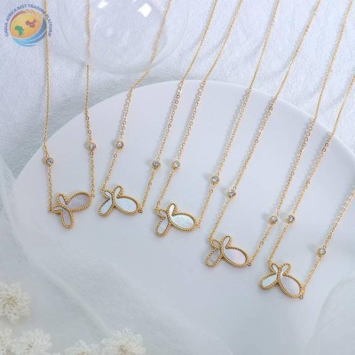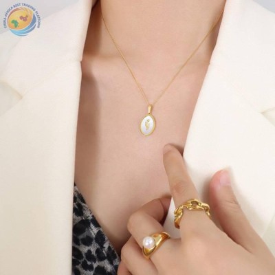 设计感饰品女钛钢镀18k金郁金香白贝母项链