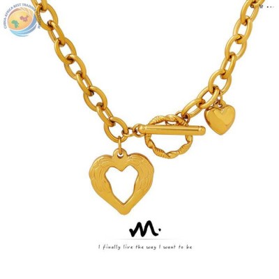 轻奢ins风小众设计双面桃心项链钛钢镀吊坠项链