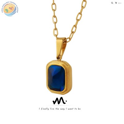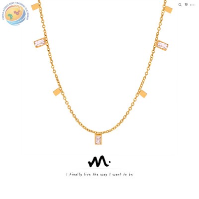 小众设计钛钢镀金几何镶锆石方形吊坠项链