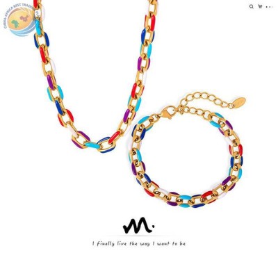 新款度假风高级感小众滴油钛钢项链手链百搭饰品