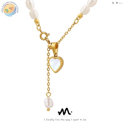 时髦轻奢风气质淡水珍珠链镶嵌白海贝心形吊坠项链