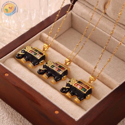 ins风个性夹珠链饰品滴油镶钻吊坠钛钢项链