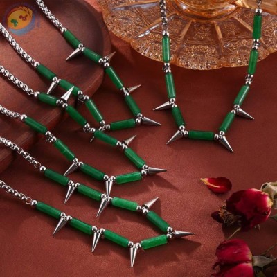 欧美嘻哈风设计感饰品天然石串珠钛钢项链