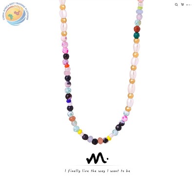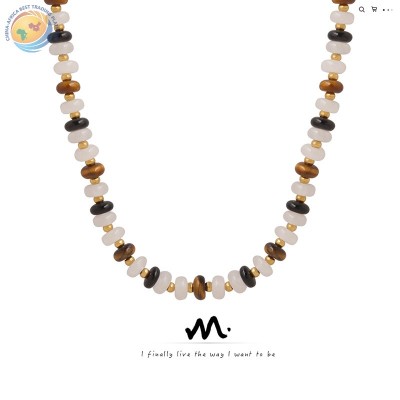 复古轻奢小众设计秋冬混彩天然石手工串珠项链饰品