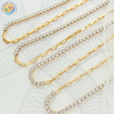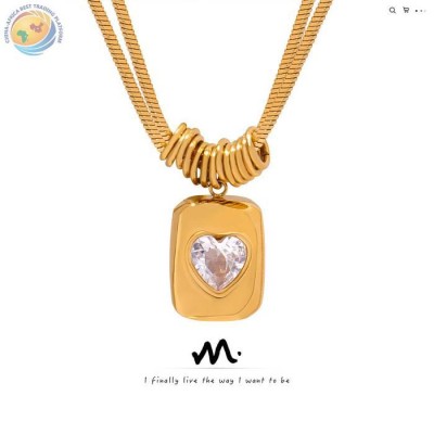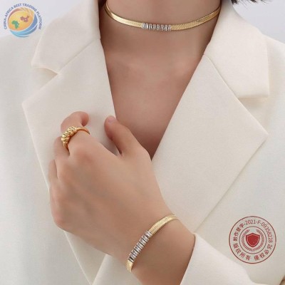复古锆石拼接项链钛钢镀18K金设计感颈链