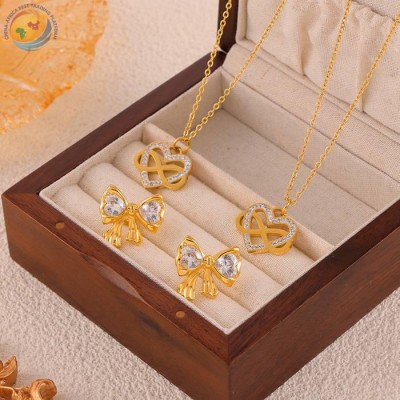 热销饰品气质甜美爱心环绕吊坠项链蝴蝶结耳环