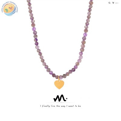 复古轻奢钛钢镀金爱心吊坠天然切面石手工串珠项链女