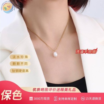 小众钛钢镀金几何形不规则天然石吊坠项链饰品