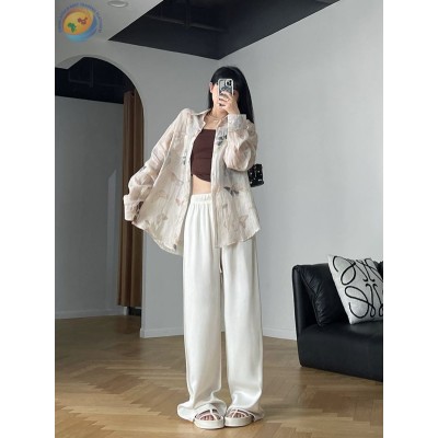醋酸休闲拖地裤高腰空气裤直筒冰丝阔腿裤
