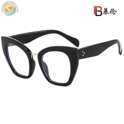欧美个性米钉平光镜时尚猫眼包花大框眼镜