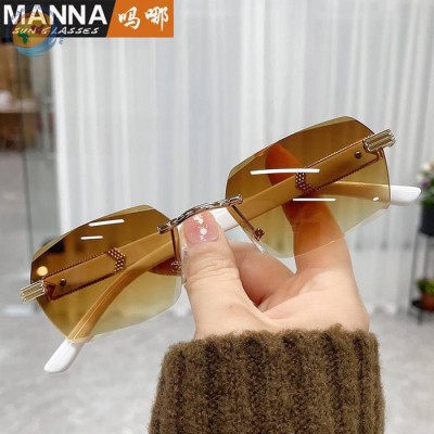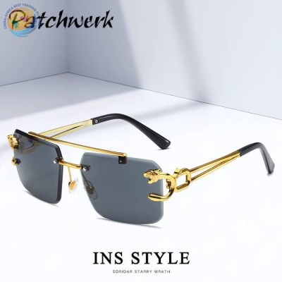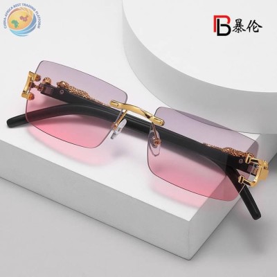 新款高级感无框豹子头双梁太阳镜街拍金属墨镜