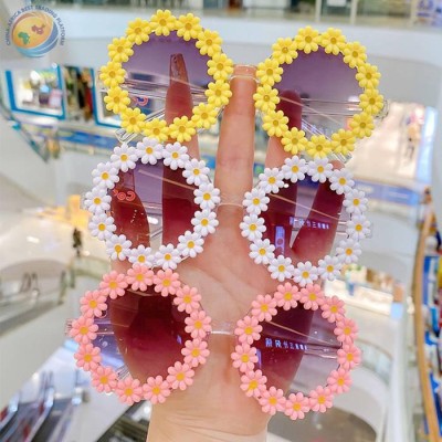 新款可爱花朵儿童镜女童复古圆形沙滩墨镜