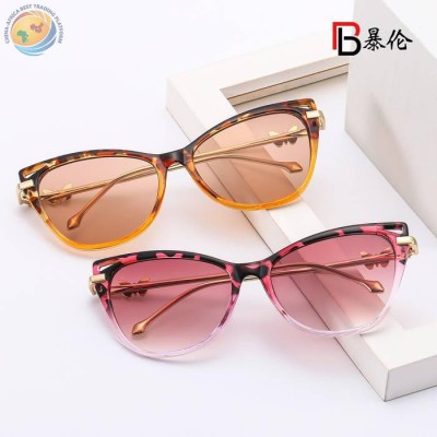 渐变色蝴蝶太阳镜欧美复古猫眼金属墨镜