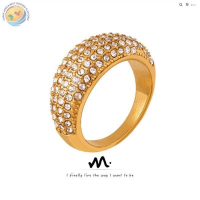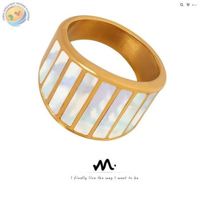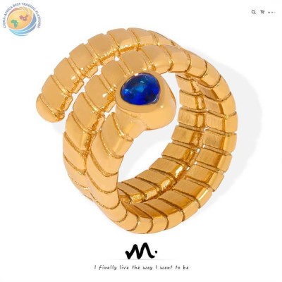 轻奢时尚钛钢镀金镶彩石不规则开口不可调节戒指