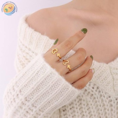 欧美ins冷淡风简约箭头心形开口可调节戒指