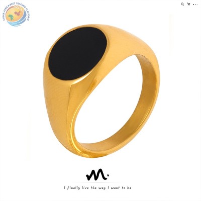 法式ins风亚马逊热销黑色滴油圆形指环戒指