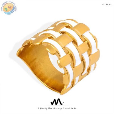 小众设计钛钢镀金珐琅彩釉编织不规则戒指