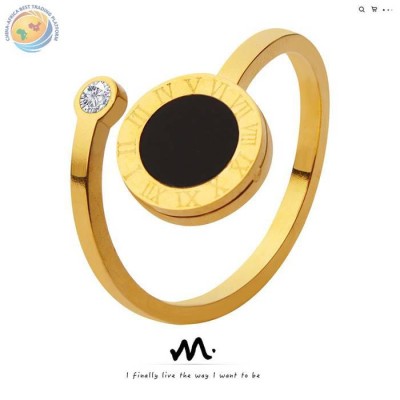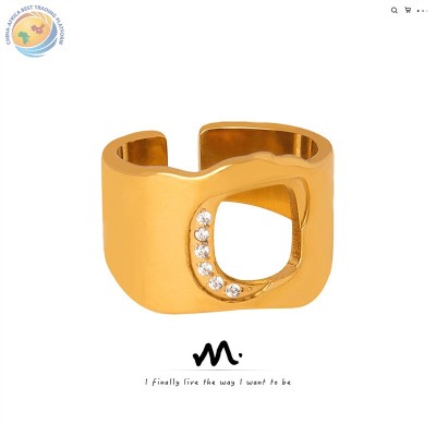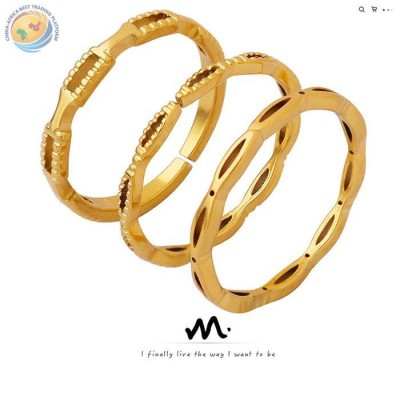 时尚精致百搭个性开口戒指冷淡风气质钛钢镀金指戒