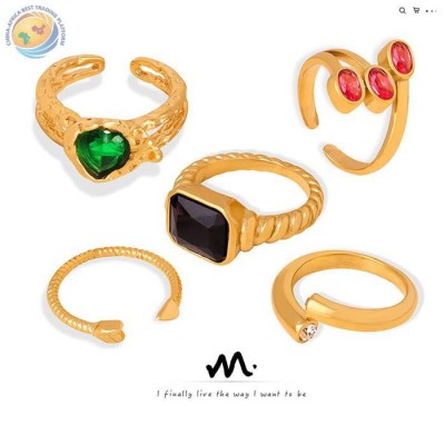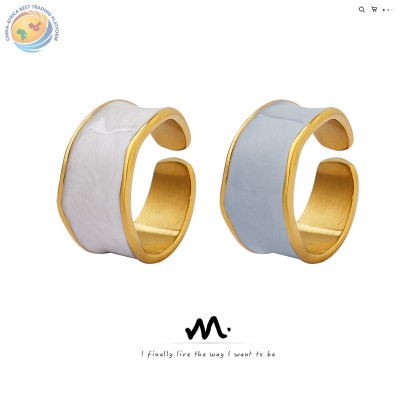 欧美风复古时尚个性钛钢镀金几何珐琅彩釉戒指指环