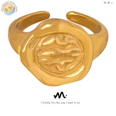 时尚小众复古不规则凹凸纹理钛钢抽象图案开口戒指