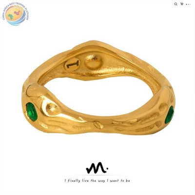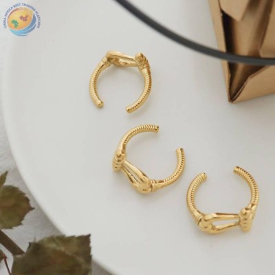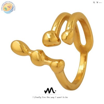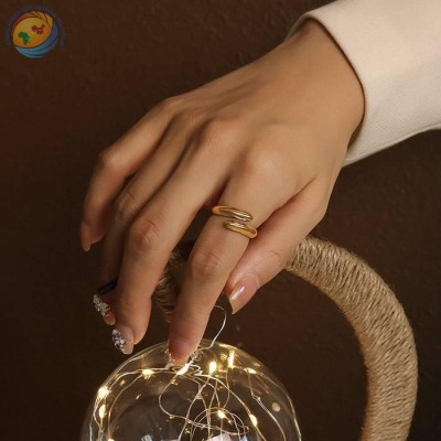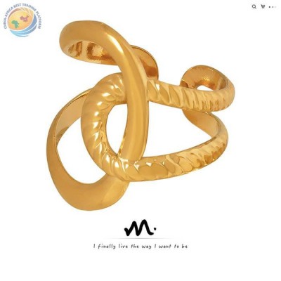 个性设计缠绕不规则钛钢电镀18K金开口戒指饰品