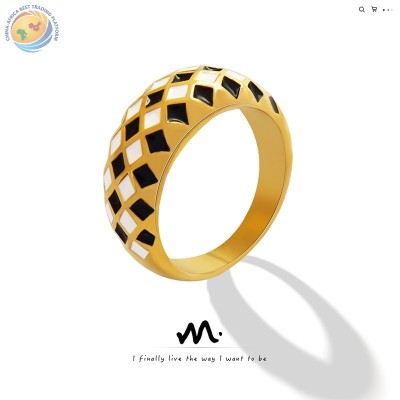 法式新款小众设计黑白菱形格纹戒指