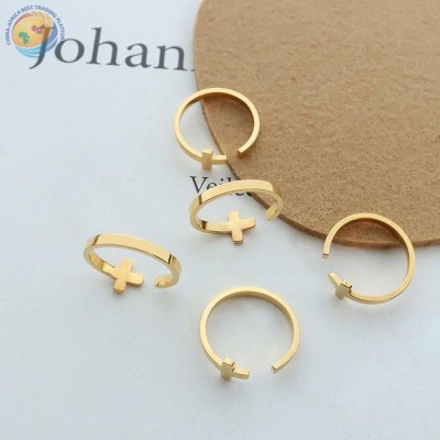 欧美ins风小众轻奢十字架开口戒指情侣款