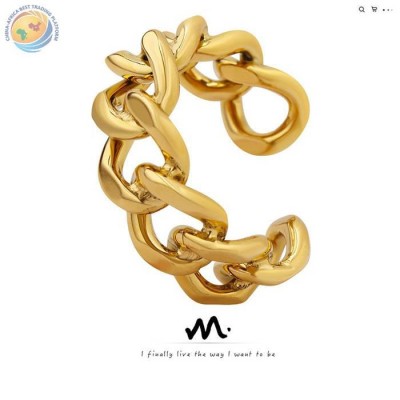 欧美冷淡ins风链条镂空麻花开口钛钢戒指