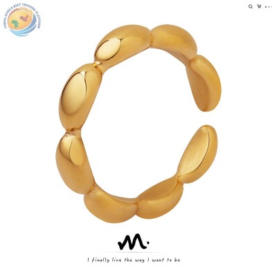 Marka法式ins风光面素圈戒指女钛钢镀18k金指环食指戒
