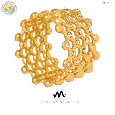 French retro selling mesh woven hollow inlaid Czech diamond ring